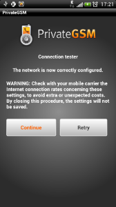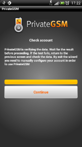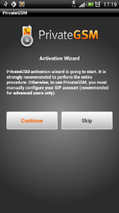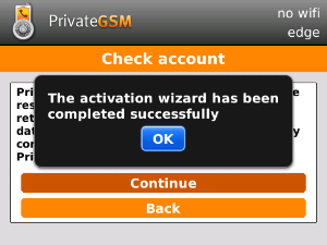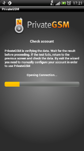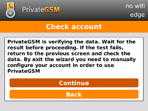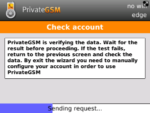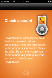 Start the activation wizard and insert your SIP account data. Before trying to connect to your SIP server, PrivateGSM will check your connection to Internet. If the network is correctly configured, PrivateGSM will check your SIP account data. If the activation wizard has been completed successfully, PrivateGSM is ready to use.