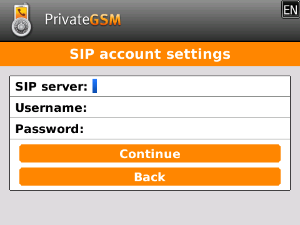 Before you can start using PrivateGSM Enterprise with Enterprise VoIP Security Suite you must configure a SIP account that's properly configured and enabled on a PrivateServer.