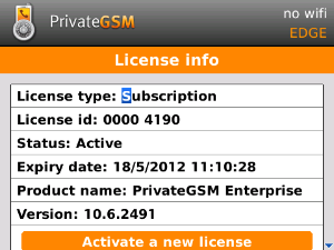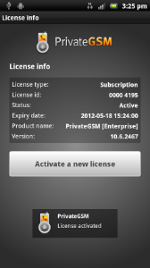 On Android and Blackberry platform you can also check the license state from the main screen of PrivateGSM. The license icon reflects the current license state: