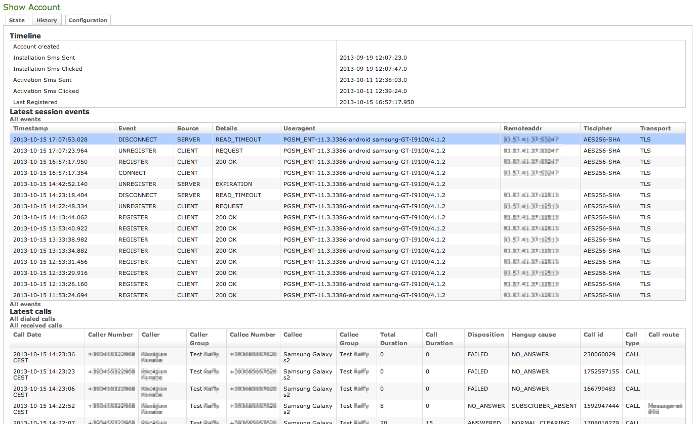 2. Last session events is an excerpt of the SIP Sessions targeted to the account.