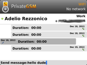 Since the "History" lists all the communication attempted or happened on your PrivateGSM, it's possible to start a conversation using "History" as well, eg: answering to a missed call by a Secure Message or just using one event conveniently.