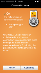 | Click the provisioning link | Select "Open in | Confirm | New configuration has been applied: press OK to start connectivity tests |
