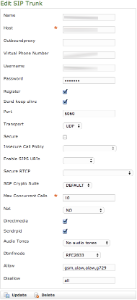 Click on the New Sip Trunk to go to the Edit Sip Trunk page.